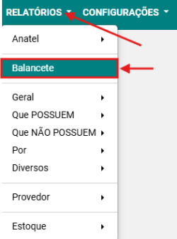 Passo 1: Acesse a opção RELATÓRIOS → BALANCETE