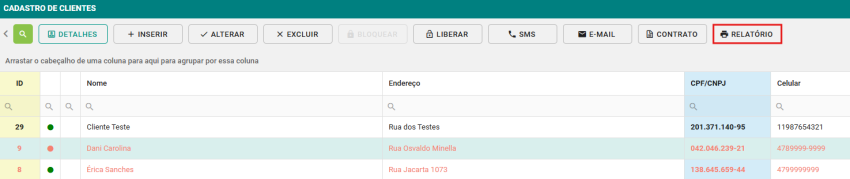 Passo 2: Clique no botão RELATÓRIO.