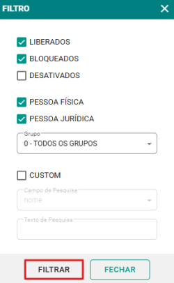 Passo 3: Na tela dos filtros, selecione conforme a necessidade, em seguida, clique em FILTRAR para gerar um arquivo.