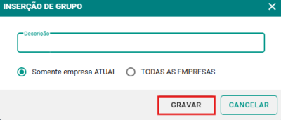 Passo 3: Preencha o formulário com as informações do grupo, como descrição e demais dados necessários. Logo após, clique no botão GRAVAR para salvar as informações.