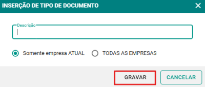 Passo 3: Preencha o formulário com as informações do tipo de documento, como descrição e demais dados necessários. Logo após, clique no botão GRAVAR para salvar as informações.