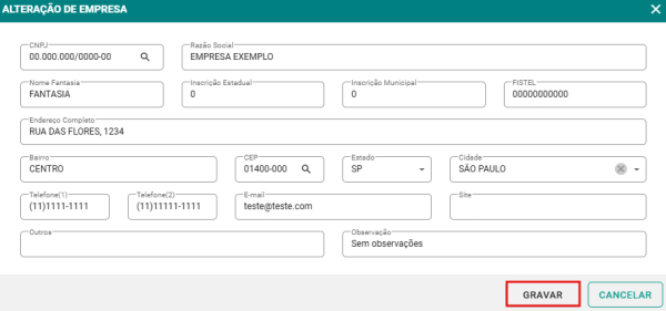 Passo 3: Faça a devida alteração que necessita. Logo após, clique no botão GRAVAR para salvar as informações.