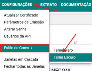 Selecione a opção CONFIGURAÇÕES → ESTILO DE CORES → TEMA ESCURO