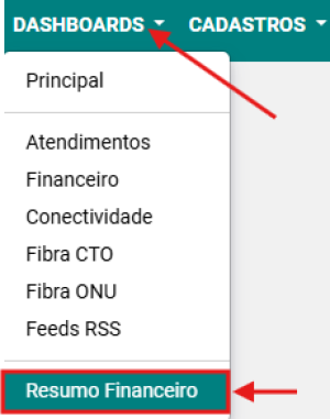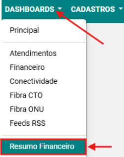 Passo 1: Acesse a opção DASHBOARDS → RESUMO FINANCEIRO