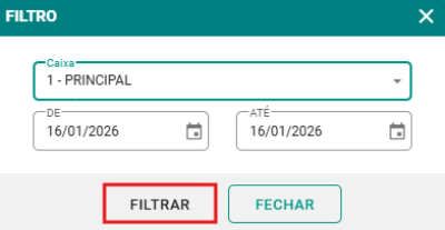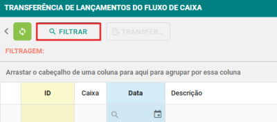 Passo 2: Clique no botão FILTRAR para definir o caixa e o período dos lançamentos que deseja transferir.