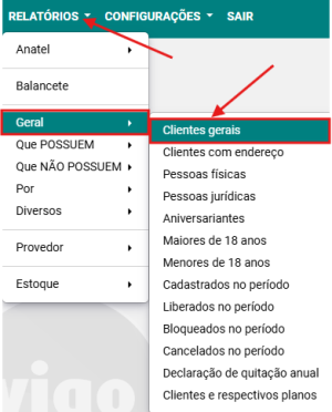 Passo 1: Acesse a opção RELATÓRIOS → GERAL → CLIENTES GERAIS