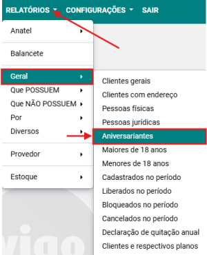 Passo 1: Acesse a opção RELATÓRIOS → GERAL → ANIVERSARIANTES