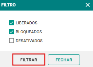 Passo 2: Defina os filtros desejados, como liberado, bloqueado ou desativado. Em seguida, clique no botão FILTRAR para gerar o relatório.