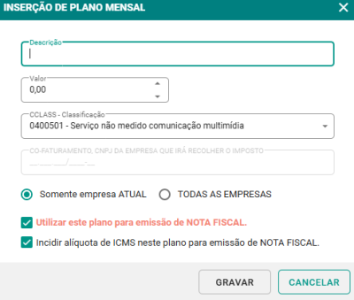 O plano mensal é local aonde a empresa cadastrara os planos financeiros da empresa.