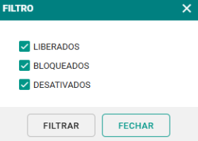 Passo 2: Selecione os filtros desejados, como clientes liberados, bloqueados ou desativados. Em seguida, clique no botão FILTRAR para gerar o relatório.
