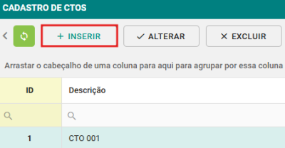 Passo 2: Clique no botão INSERIR para cadastrar uma nova CTO.