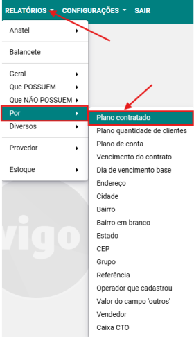 Passo 1: Acesse a opção RELATÓRIOS → POR → PLANO CONTRATADO