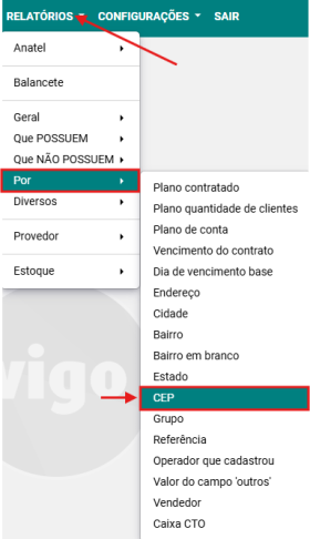 Passo 1: Acesse a opção RELATÓRIOS → POR → CEP