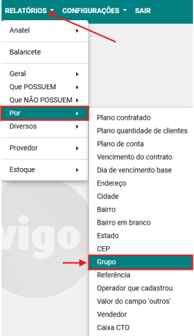 Passo 1: Acesse a opção RELATÓRIOS → POR → GRUPO