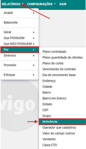 Passo 1: Acesse a opção RELATÓRIOS → POR → REFERÊNCIA
