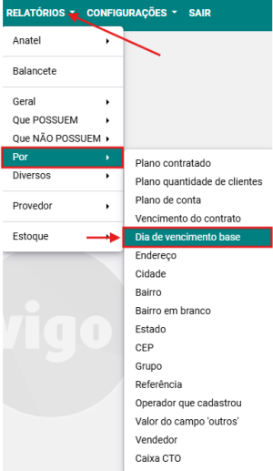 Passo 1: Acesse a opção RELATÓRIOS → POR → DIA DE VENCIMENTO BASE
