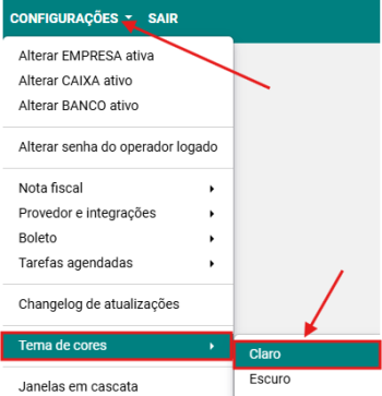 Selecione a opção CONFIGURAÇÕES → TEMA DE CORES → CLARO